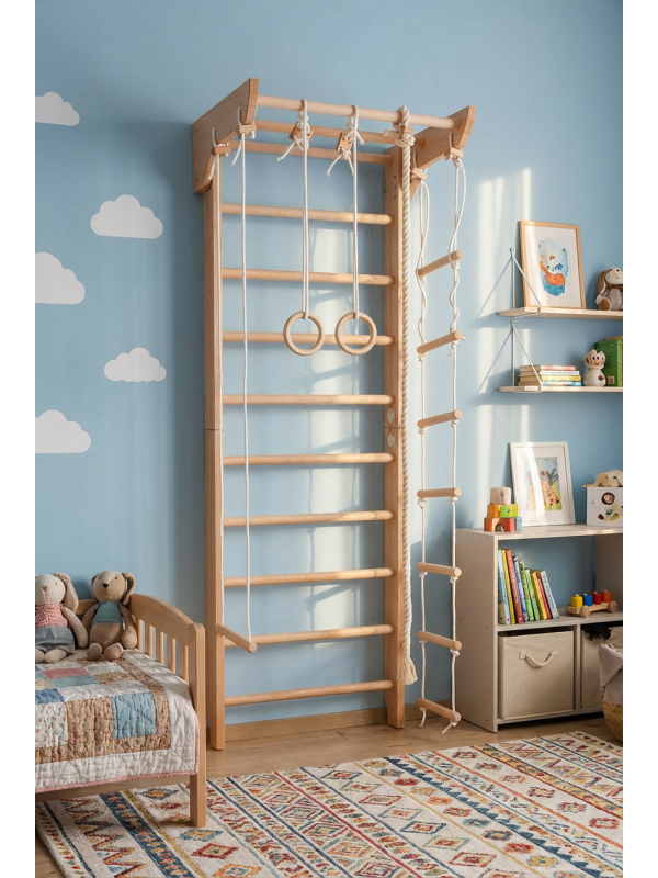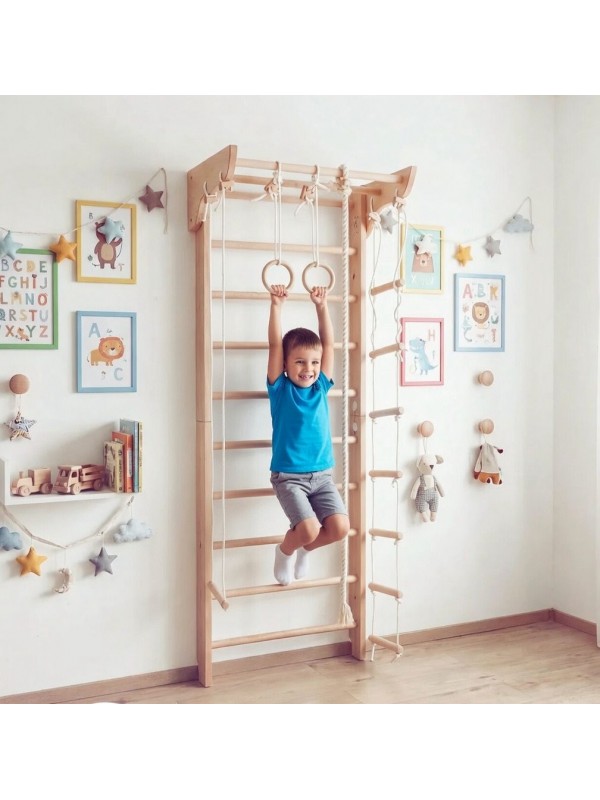 Cerchi un’attrezzatura versatile che farà felici sia i bambini che gli adulti? La nostra scala svedese con accessori è la scelta ideale! Realizzato in Europa con materiali naturali di alta qualità che garantiscono sicurezza e durata, e progettato per occupare il minimo spazio: perfetto per qualsiasi casa!