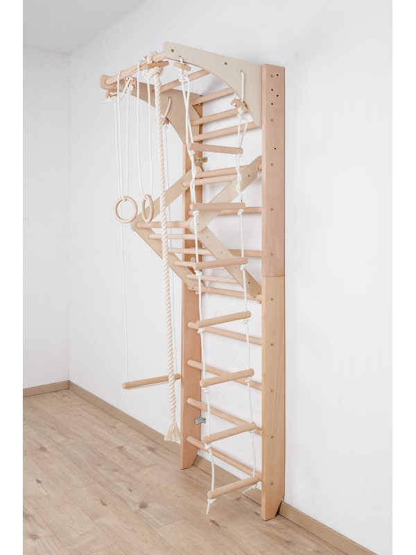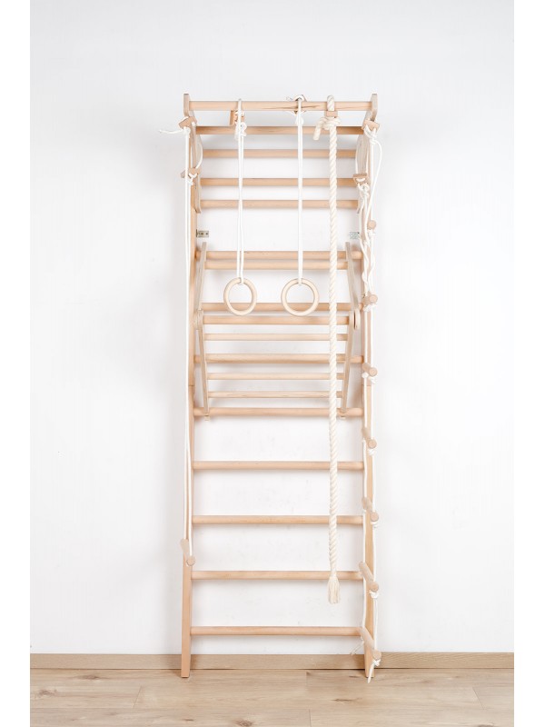 Scaletta con accessori combina la funzionalità di una classica scaletta da parete con una parete da arrampicata divertente. Favorisce lo sviluppo del movimento, della forza, dell'equilibrio e della coordinazione, offrendo infinite possibilità di gioco e allenamento negli spazi interni.